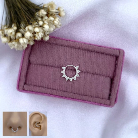 Piercing argolinha de prata cravejado em micro zircônias. Material prata 925. Ideal para o nariz, hélix, daith, tragus, etc.